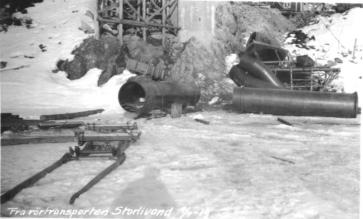 rørtr1 Publisert den 22. mars, 2018 kl. 800 × 483 på Foto: Røyrgater ← Forrige Neste → Transport av rør på Storlivann vinteren 1919.