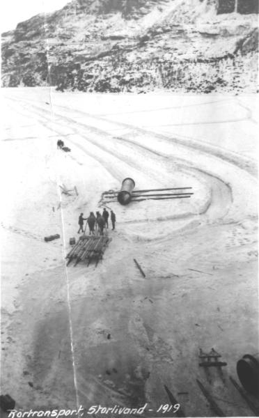 rørtr6 Publisert den 22. mars, 2018 kl. 372 × 600 på Foto: Røyrgater ← Forrige Transport av rør på Storlivann vinteren 1919.