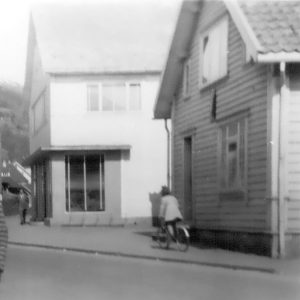 Daniel Fløgstad selde tomta til J. N. Aartun i 1916, og huset vart truleg bygt det året. Byggmeister var Helmert Ringhagen. Men Aartun sat ikkje lenge med eigedomen. Han selde «Elvehøy» året etter til Sauda Kooperative Handelsforening. Men «Kooperativen« måtte gi opp etter kort tid. I 1919 kjøpte Wilhelm Bentzen og Larsine Ringhagen huset. Det kom til å vera Ringhagen-familien sin eigedom til Ingolf Pedersen i 1945 kjøpte det av Helmert Ringhagen og Larsine Aarebrot (f. Ringhagen). Wilhelm Bentzen og Larsine Ringhagen byrja manufakturforretning saman. Ei annonse dei sette inn i Ryfylkeposten i mars 1919, fortel at dei fører undertøy, arbeidsklede, dametøy, sko og «alt i branchen tilhørende artikler». Det var truleg denne forretninga Peder Bjordal overtok i 1927.