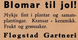 Brørne Martin- og Johannes Fløgstad bygde dette huset saman i 1929. I første etasje innreidde dei to forretningslokale. Johannes hadde handelsbrev. Martin hadde gått på gartnarskulen i Ulvik. I 1930 starta dei sal av blomster, frukt, grønsaker og keramikk i det nordre lokalet. På heimegarden på Fløgstad sette dei opp to mindre vektshus og driv-benker og satsa på blomster, prydbuskar, frukttre og tomater. I 1955 kjøpte Martin bruket «Longabakka» på Brekke, der han sette opp to større veksthus og utvida produksjonen. Johannes og Martin Fløgstad åtte også hjørnetomta der Bertha Sivertsen dreiv «Torvets Frukt og Tobakk». I midten av 1960-talet ordna brørne seg slik at Martin overtok huset, medan Johannes fekk hjørnetomta, som han straks etter selde til Bergens Kreditbank.