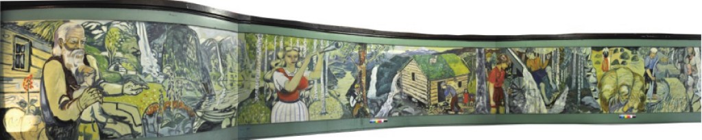 I Sauda befinner det seg det jeg liker å kalle arbeiderbevegelsens stavkirke. Når dere kommer til Sauda vil jeg absolutt anbefale dere å gå inn i gamle Folkets Hus. Der har noen malt en frise på den samme måten som man har malt bilder på i stavkirkene.