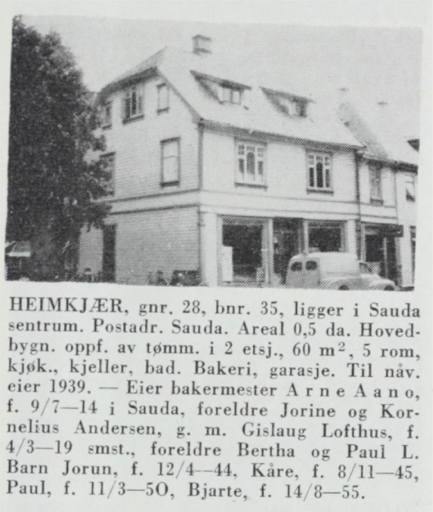 Etter at postkontoret flytte ut, vart Sauda Meieri leigetakar i fyrste høgda og opna utsal i lokalet. Her kjøpte saudabuen mjølk og fløyte i spann og glas tram til 1937, då meieriet bygde sitt eige hus i Skulegata i 1937. Bakar Kornehus Andersen, som hadde både bakeri og brødutsal vegg i vegg med Grand Hotell, hadde leigt eit lite butikklokale meir sentralt, i huset til Ole Seim. På grunn av auka omsetnad ynskte bakar Andersen eit meir romsleg lokale, og etter at Martha Tvedten gjekk bort, baud han på det eldste huset hennar og fekk tilslaget. Dette huskjøpet kom i stand ei stutt tid før krigen. Eldste sonen til Andersen, Arne Aano, flytte inn i andre høgda med familien. Då faren gjekk bort, var det han som overtok både bakeriet og brødutsalet. Han fann det naudsynt å modernisera bakarverksemda og bygde eit bakeri i betong som eit tilbygg til huset ved Rådhusplassen. Her installerte han moderne bakaromnar og tok i bruk nytt utstyr elles. Det vesle utsalet i foreldreheimen vart lagt ned.