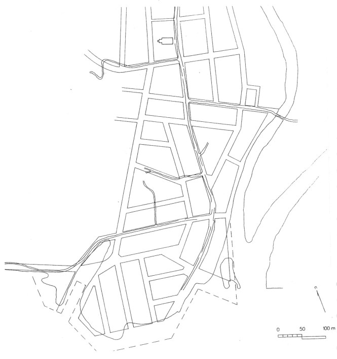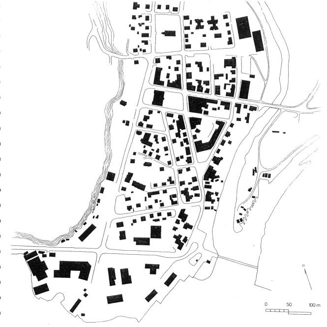 Kombinasjonen av ønsket om et klart gatemønster og den eksisterende situasjon gir en byplanløsning som viser seg funksjonell samtidig som den har en klar identitet – et vellykket møte mellom en ideell byplanmodell og en konkret situasjon.